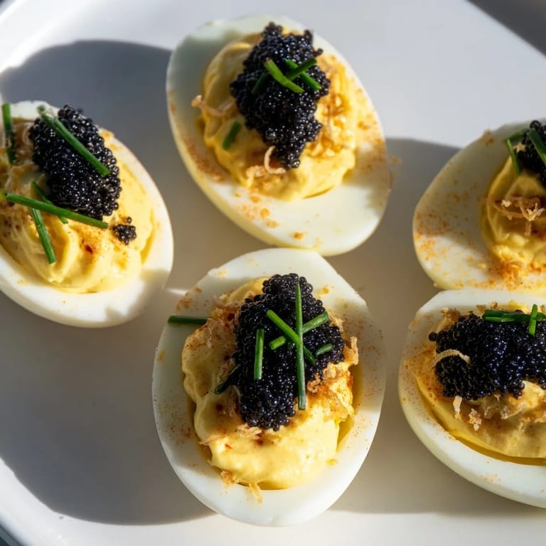Save Pin My neighbor threw a dinner party last spring, and I arrived empty-handed except for a bottle of wine—until she mentioned appetizers were running low. I raided her pantry like a chef on a mission, found eggs and caviar hiding in the back of her fridge, and thirty minutes later, these deviled eggs became the conversation piece of the evening. Something about the way the caviar's tiny pearls caught the candlelight made them feel special without being fussy, and honestly, that moment taught me that elegant food doesn't require hours of fussing.