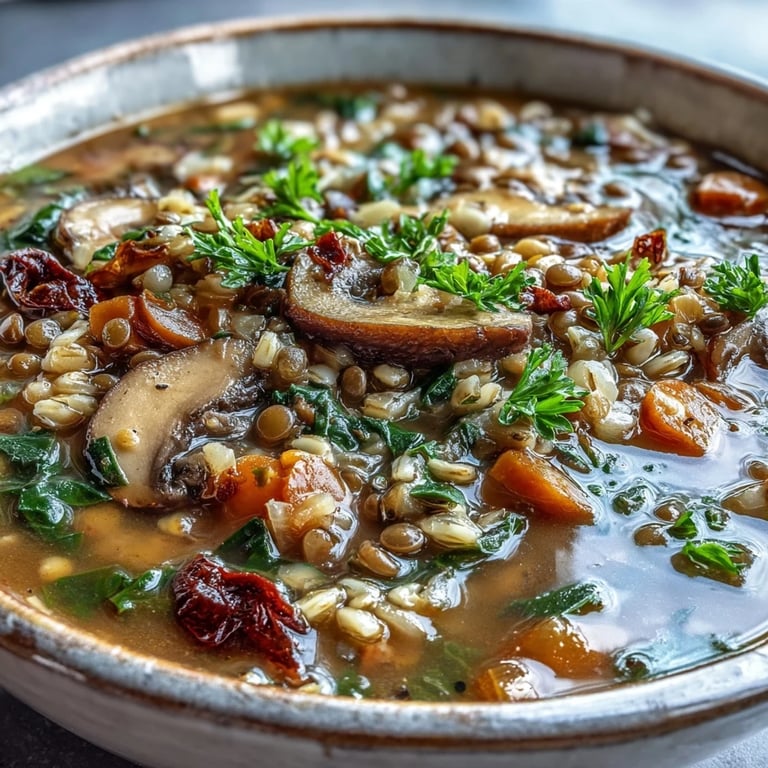 Save Pin There's something about a bowl of lentil soup that stops time—at least it did for me on a gray November afternoon when I was sorting through my pantry and discovered three different legumes staring back at me. I'd been meaning to use them all, and suddenly it clicked: why choose when you could build something greater by combining them? That's how this double lentil and mushroom barley soup came to life, born from the practical chaos of a well-stocked kitchen and the kind of happy accident that tastes intentional.