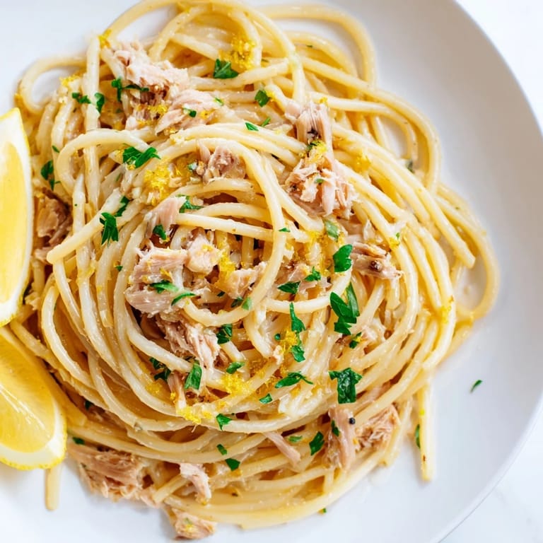 I made this for a friend who'd been working long hours and said she couldn't face another takeout meal. Watching her twirl the first bite on her fork and taste that combination of tender pasta, flaky tuna, and bright lemon—she looked genuinely relieved. Sometimes food is just food, but sometimes it's exactly what someone needed that day.