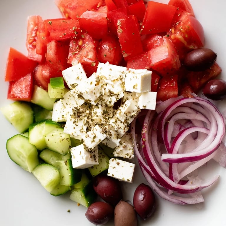 Save Pin There's something about the way a Mediterranean salad comes together that reminds me of a lazy afternoon spent at a friend's kitchen table, watching her casually chop vegetables while telling stories about a trip to Greece. She didn't measure anything, didn't stress about perfection, just threw tomatoes and cucumbers into a bowl with the confidence of someone who'd eaten this salad a hundred times. That's when I realized this wasn't really a recipe to follow—it was a way of cooking that celebrates simplicity and the quality of what you're working with.